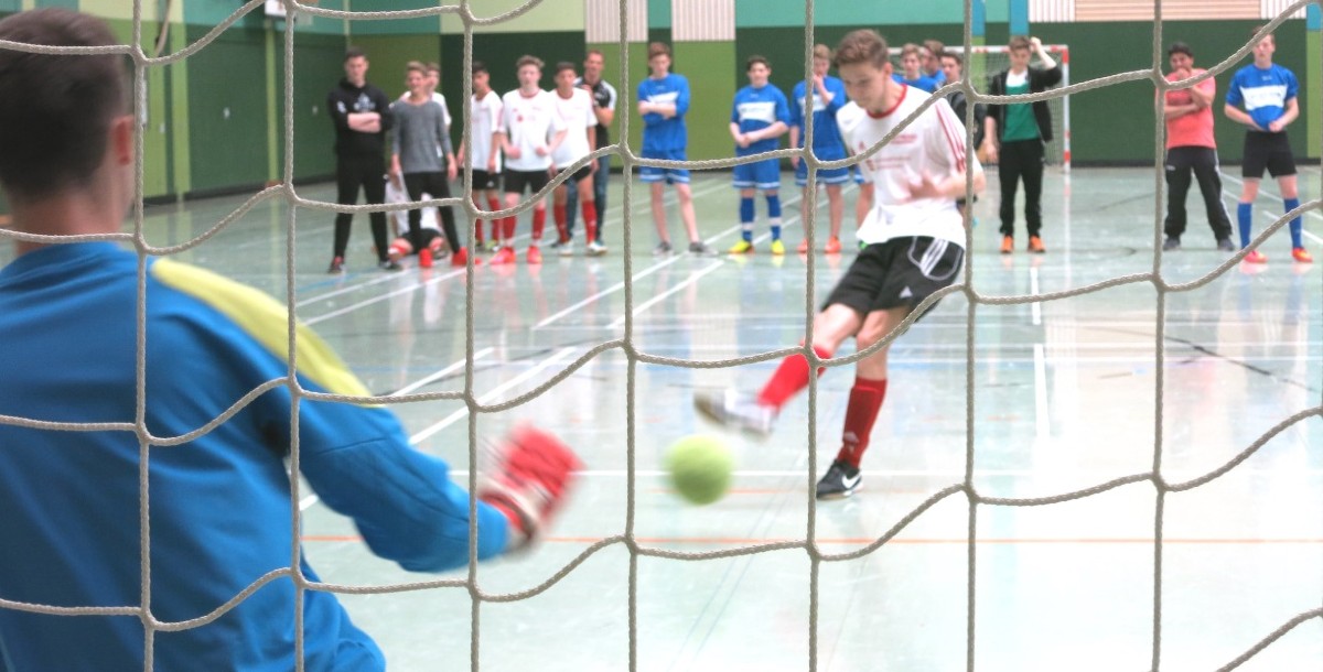 Die Jungen spielten eine Vorrunde mit jeweils zwei Dreiergruppen. Das Team IGS II Kapitän Christian Platte kämpfte aufopferungsvoll, verlor aber knapp beide Gruppenspiele mit 1:0 und 3:1. So trat man am Ende im Spiel um Platz 5 gegen die Zweite der Bertha an. Durch ein Tor von Christian ging man zwar mit 1:0 in Führung. Diese konnte man aber nicht verteidigen, sondern man fing sich noch zwei Gegentore ein und verlor denkbar knapp mit 2:1. Anders verlief das Turnier für unser anderes Team IGS I. Mit einem 4:0 Sieg durch die Tore von Dario, Johannes (2) und Mika und einer eher deutlichen Niederlage gegen das Gymnasium I in der Vorrunde zog man als Gruppenzweiter ins Halbfinale ein. Hier war der Gegner die Bertha I. In einem engen Spiel siegten unsere Jungs durch zwei Tore von Dario mit 2:0. Im Finale war der Gegner das Gymnasium II, die überraschenderweise ihre "Erste" mit 2:1 besiegt hatten. Immer wieder schafften es unsere Jungs, den Gegner am entscheidenden Torschuss zu hindern. Man konnte sogar mit 1:0 durch Dario in Führung gehen. Doch kurz danach fiel der verdiente Ausgleich. Als es am Ende der regulären Spielzeit 1:1 unentschieden hieß, musste das Siebenmeterschießen entscheiden. Hier schaffte es unser Torwart Nils einen entscheidenden Siebenmeter zu halten, nachdem zuvor Mika am gegnerischen orwart gescheitert war. In der Verlängerung des Siebenmeterschießens gelang es Nils erneut, einen Siebenmeter zu halten. Damit bot sich dem Kapitän Leander die Möglichkeit, das Spiel zu unseren Gunsten zu entscheiden. Er blieb ganz cool, verlud den Torwart und schob zu entscheidenden Siegtreffer für sein Team ein. Da kannte natürlich der Jubel aller anwesenden IGS-Schüler keine Grenzen mehr.