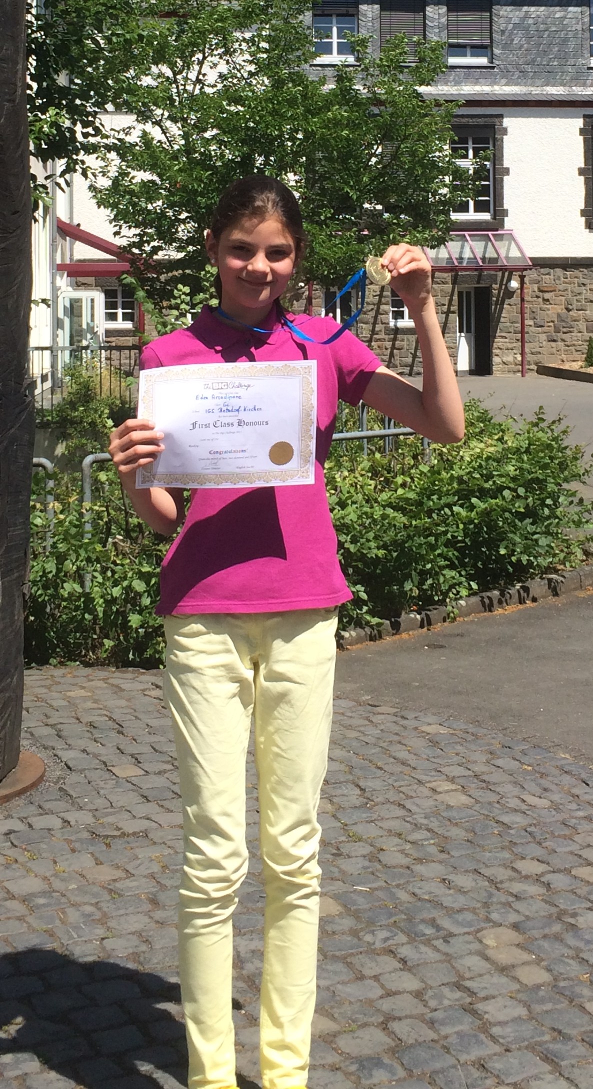 Am diesjährigen Englischwettbewerb „Big Challenge“ nahmen erfreulich viele Schülerinnen und Schüler der Integrierten Gesamtschule teil. Hauptziel war es, den Schülern einen pädagogischen Anreiz zu geben, sich mit Gleichaltrigen in der Fremdsprache zu messen und ihre Englischkenntnisse auf spielerische Weise zu verbessern. So konnten sich, die Kinder, die besonders ehrgeizig waren, im Vorfeld online auf den Wettbewerb vorbereiten und zahlreiche Übungsaufgaben in den unterschiedlichsten Schwierigkeitsstufen erledigen. Am 12. Mai war es dann soweit. Am Tag des „Big Challenge“ Wettbewerbs rauchten an der Schule die Köpfe. Zu bearbeiten waren verschiedene Aufgaben aus den Bereichen Vokabular, Grammatik, Leseverstehen und Landeskunde. Hierfür gab es zwar keine Noten, aber dennoch waren alle Teilnehmer vom Ehrgeiz gepackt, so gut wie möglich abzuschneiden. Die Anstrengungen der Schülerinnen und Schüler waren von Erfolg gekrönt und so konnte die Pädagogische Koordinatorin der Klassenstufen 5/6, Monika Höck, vor einigen Tagen eine erfolgreiche Siegerehrung vornehmen. Alleine 60 Schülerinnen und Schüler der Klassen 6 konnten ihre Preise in der Aula entgegennehmen. 26.416 Sechstklässler hatten in ganz Deutschland teilgenommen, 800 davon aus Rheinland-Pfalz. Schulbeste der Stufe 6 war Eden Arcadipane aus der Klasse 6c. Sie belegte Platz 43 von 800 teilnehmenden Schülern in ihrer Jahrgangsstufe. Weiterhin stellten 15 Jugendliche aus den Klassen 7 und 8 ihre Englischkenntnisse unter Beweis. Hervorragende Ergebnisse erzielten dabei Zoe Schneider, Julian Hoppius und Jana Willenwebe raus der Klasse 8d. Sie belegten alle drei Platz 18 in Rheinland-Pfalz.