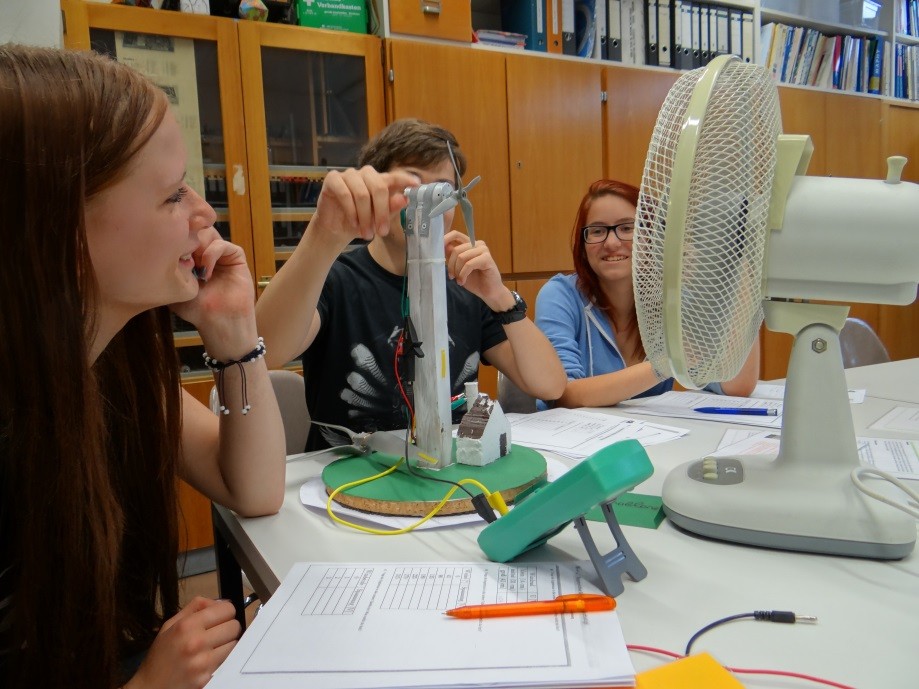 Nach einer Kurzvorlesung von Herrn Henrik Bernshausen, verantwortlich für Physikdidaktik an der Uni Siegen, experimentierten die Neuntklässler an acht Stationen zu Photovoltaik, Windkraft, Solarthermie, Brennstoffzelle und Wärmedämmung. Unterstützt wurden die Schüler hierbei von Studierenden der Uni Siegen sowie ihrem Physiklehrer Hermann Hesse und der Stufenkoordinatorin Nina Cherouny-Kroll. Hochkonzentriert wurde in Kleingruppen gelesen, Versuche wurden aufgebaut, es wurde beobachtet, gemessen, dokumentiert und analysiert. Über drei Stunden konnten sich die Schüler intensiv mit den unterschiedlichen physikalischen Phänomenen auseinandersetzen. „Eine tolle Sache“ so die einhellige Meinung der teilnehmenden Schüler zu dieser außerunterrichtlichen Erfahrung. Und auch das Lehrpersonal war sich einig: „Dieser Erfolg bestärkt uns, den regelmäßigen Besuch im Schülerlabor als Bestandteil des MINT-Konzepts der IGS-Betzdorf-Kirchen beizubehalten.“