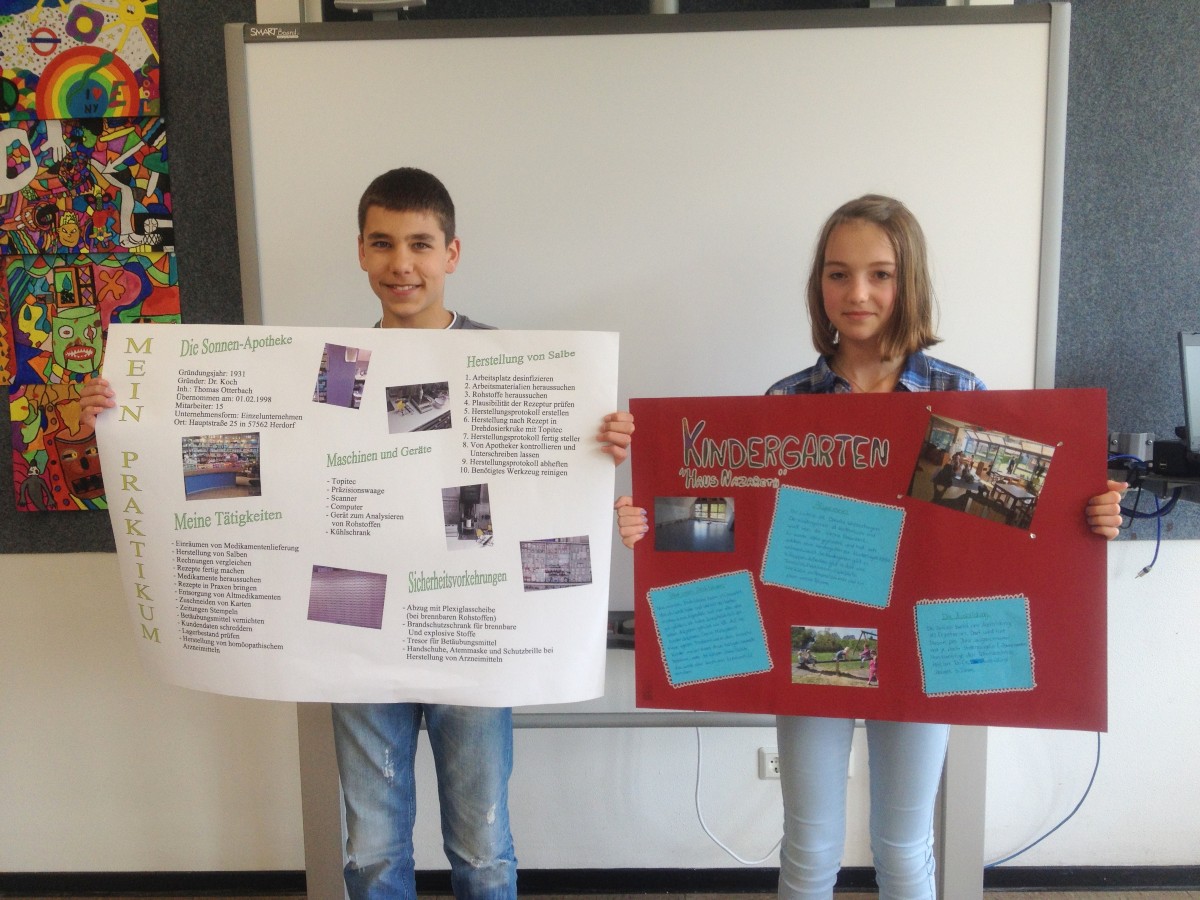 Die Achtklässler der IGS Betzdorf-Kirchen absolvierten nach den Osterferien ihr erstes zweiwöchiges Praktikum in einem Betrieb. Die Schülerinnen und Schüler hatten bereits in den vergangenen Schuljahren erste Erfahrungen im Berufsleben gesammelt. Im Rahmen der Berufsorientierung wurden Tagespraktika und Betriebserkundungen durchgeführt. Doch nun begann für die Jugendlichen zwei Wochen lang der Ernst des Lebens. Das Bestreiten eines Arbeitsalltags, der frühes Aufstehen, einen langen Arbeitstag, ungewohnte körperliche und neue geistige Anforderungen, Pflichten, Verantwortung und Selbstständigkeit forderte. Bei den Praktikumsbesuchen durch die Klassenlehrer zeigte sich jedoch schnell, dass es den Schülerinnen und Schülern gelang, diese Herausforderungen gut zu meistern. Die Betriebe sparten nicht mit Lob und sprachen durchweg positiv über den Arbeitseinsatz und auch das Sozialverhalten der Jugendlichen. Diese stellten an einem Präsentationsabend, zu dem Eltern, Betriebe und das Kollegium eingeladen waren, ihr Praktikum vor. Über 200 Gäste füllten den Mehrzweckraum in Kirchen und bekamen auf den über 100 Plakaten Einblicke zu den unterschiedlichsten Praktika im sozialen –, im handwerklichen – und im Dienstleistungsbereich. Zudem hielten einige Schülerinnen und Schüler interessante Vorträge über ihre Erwartungen und ihre Erfahrungen im Praktikum. Dabei scheuten sie sich auch nicht vor ehrlichen Worten. Mareen Althoff, die über den Alltag in einer Kindertagesstätte berichtet hatte, erntete mit ihren Abschlussworten herzliches Gelächter aus dem Publikum: „Die Arbeit mit den Kindern hat mir sehr viel Spaß gemacht. Allerdings weiß ich noch nicht, ob ich später in diesem Berufsfeld arbeiten möchte, da kleine Kinder doch manchmal auch ganz schön anstrengend sein können.“
